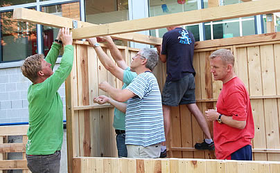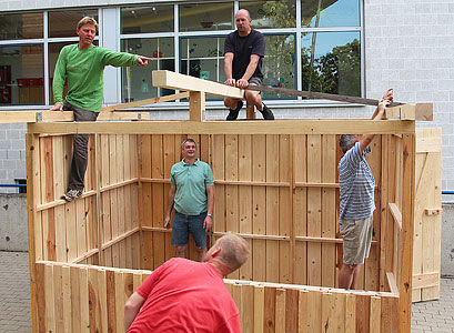Wie sich einige vielleicht noch erinnern, wurde uns kurz vor den Sommerferien die Holzbude in ihre Einzelteile zerlegt auf einer Palette geliefert.