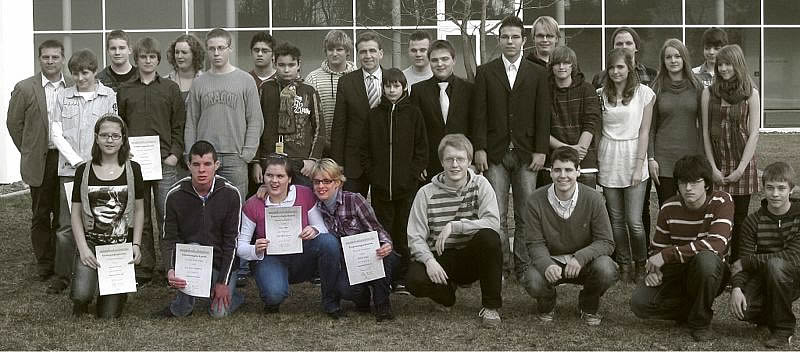 - Die Mitglieder des JuPa erhalten eine Ernennungsurkunde, überreicht von Herrn Pink. Die Presse fotografiert alle anwesenden Schüler.