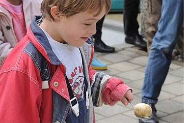 Kartoffelsongs am Feuer, Kartoffelwettlauf, Kartoffeldruck, Kartoffelspiele, Kartoffelgesichter, Malen auf dem Schulhof und ein Film über die Knolle.