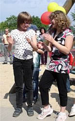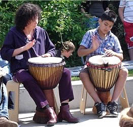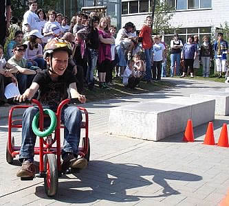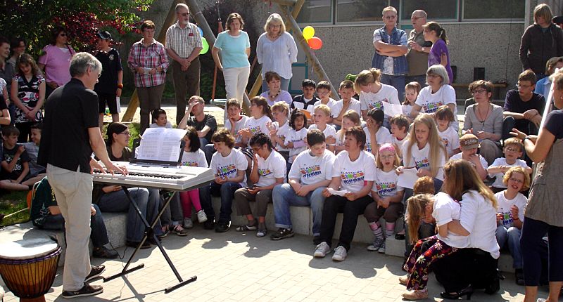 Nach dem Absolvieren des Parcours präsentieren Schüler ihre Lieder aus "Klasse! Wir singen!" und die Trommel-AG stellt ihr Programm vor. Schließlich gab es für jeden noch eine Brezel von der Bäckerei Richter.