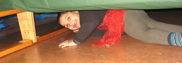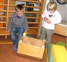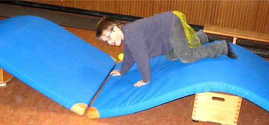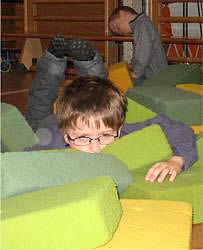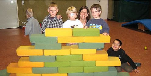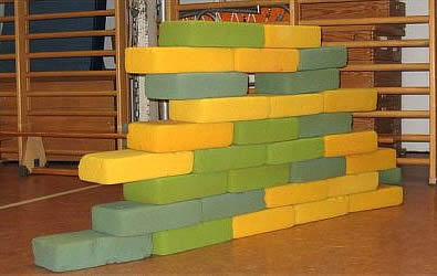 Die Steine für die Mauer in der Turnhalle sind aus weichem Schaumstoff.