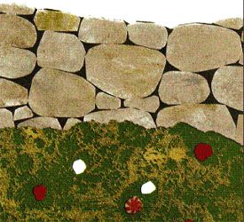 "Rund um die Wiese herum, wo Kühe und Pferde grasten, stand eine alte, alte Steinmauer."