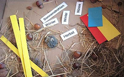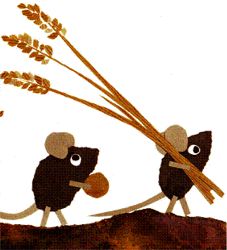 "Die kleinen Feldmäuse sammelten Körner, Nüsse, Weizen und Stroh."