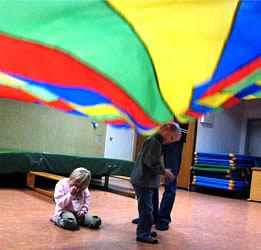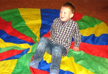 Mit dem bunten Schwungtuch erleben wir die Farben in Bewegung. |