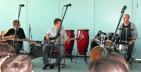band und der Klasse 9 auf den Weg nach Ilsede. Pünktlich erreichten wir mit all unseren Instrumenten die Astrid Lindgren Schule und trafen dort auf weitere Bands. Um 10:10 Uhr war es dann so weit.