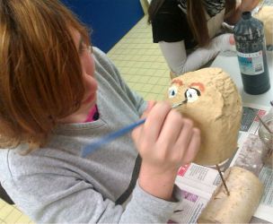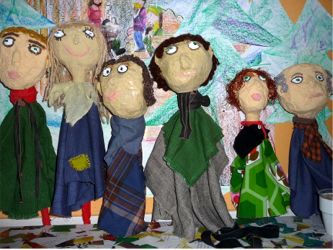 Wir aus der Klasse A1 waren mehrere Wochen damit beschäftigt, die Stabpuppen für unsere Filmaufnahmen zu der Geschichte von "Ronja Räubertochter" anzu-