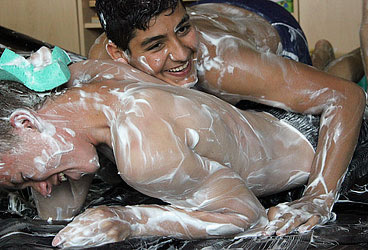 Kurz vor den Sommerferien haben die Ergotherapeuten den Ergoraum für eine Woche in eine große Seifenrutsche verwandelt.