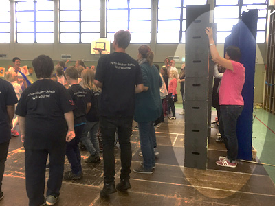 Zum Schluss waren natürlich alle wieder auf der Bühne und befördern den Haus- zum Bürgermeister und aus Wolfenbüttel wird Peter- Räuber- Stadt.