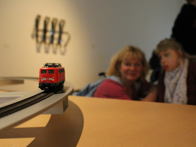 | Die Ausstellungsstücke durften wir leider nicht anfassen- diese fahrende Eisenbahnlokomotive machte uns das schwer... |