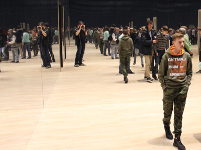 Wir stehen in einem kleinen Raum. Die Spiegelwände machen ihn unendlich groß. |