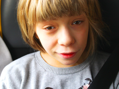 | Die Rückfahrt geht los. Von Wolfsburg nach Wolfenbüttel sind es ungefähr 45 Minuten Fahrt. Leonie ist wach. |