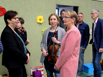 Frau Wimberg- Lowes eröffnet die Abschiedsfeier. Es wird als erstes Frau Brester anlässlich ihrer Versetzung nach Schleswig- Holstein verabschiedet.