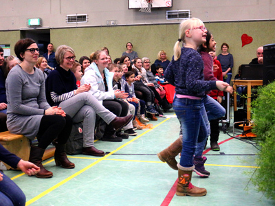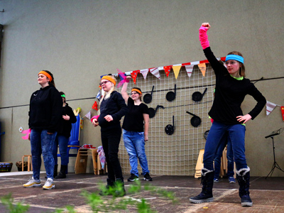 Frau Köhnemann und Frau Bartsch gehen mit der Tanzgruppe mit.