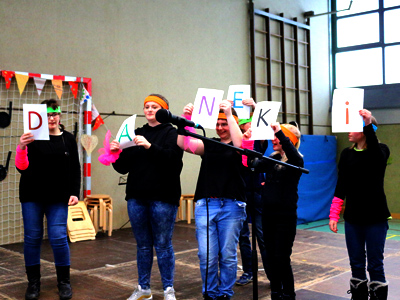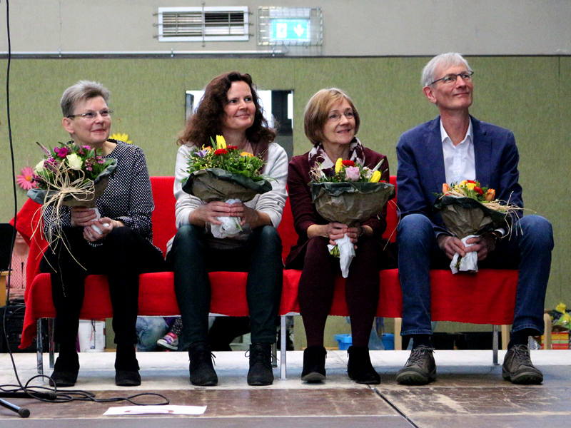 Eine Verabschiedung von gleich drei Kolleginnen und einem Kollegen ist schon etwas ganz besonderes. Wir haben die große Turnhalle geschmückt und ein großes Programm ausgetüftelt. Für die Verabschiedung kommen viele ehemaligen Kolleginnen und Kollegen.