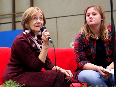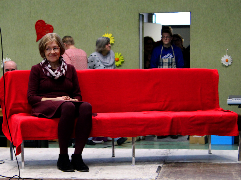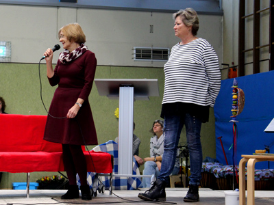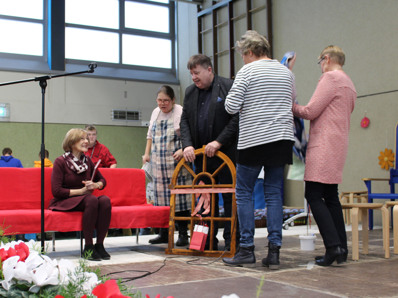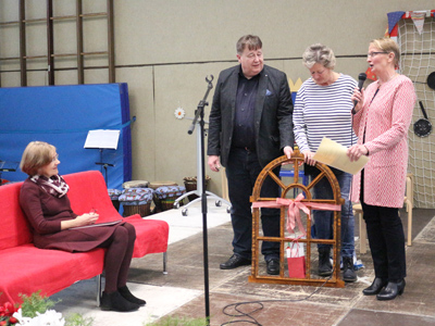 Frau Gohla bekommt als Abschiedsgeschenk ein getöpfertes Kunstwerk für den Garten.