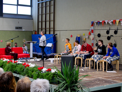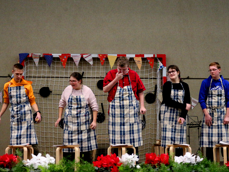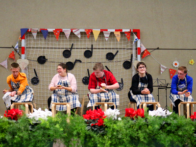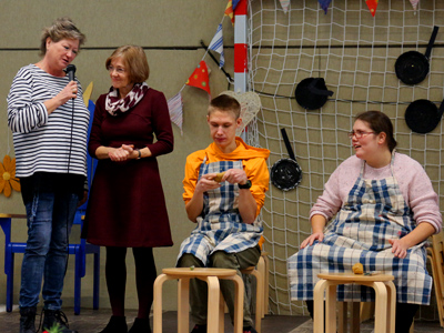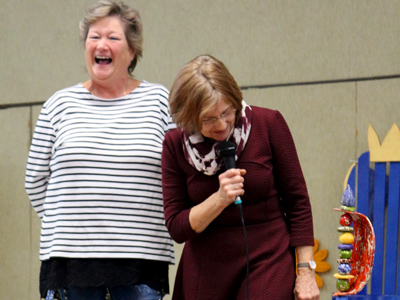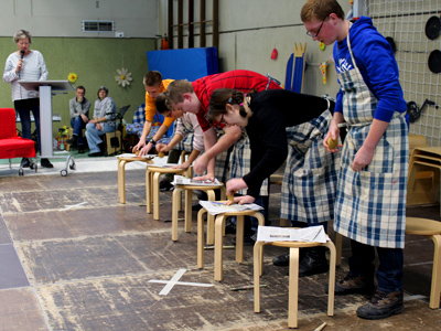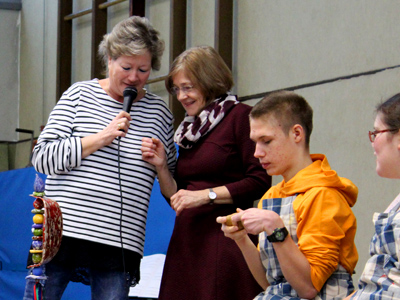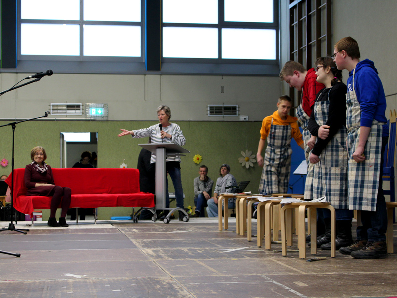 Frau Gohla geht in den Ruhestand. Sie hat über lange Jahre den Bereich Ton mitgestaltet- natürlich wird das aufgegriffen von ihren Schülerinnen und Schülern- und von Frau Mix, die ihr ein langes Ständchen "Wer will fleißige Handwerker sehen?" bringt. Ihre Schüler verarbeiten derweil den Ton.