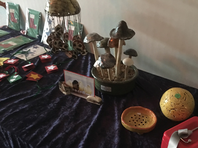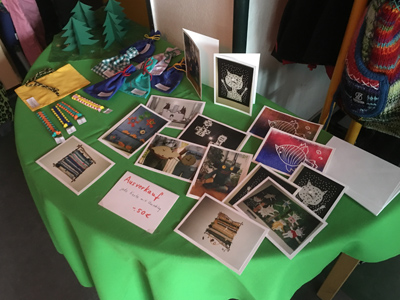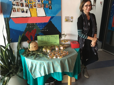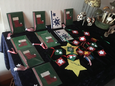 Die Schülerfirmen präsentieren zur Weihnachtsfeier viele selbstgemachte Produkte, wie Honig aus der eigenen Imkerei, Karten und Textiles und Getöpfertes.